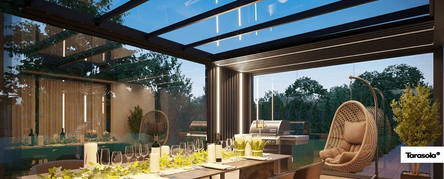 Wir bieten unseren Kunden smarte Terrassendachsysteme nach Maß, verschiedene Konstruktionen, Modellen und Erweiterungen.